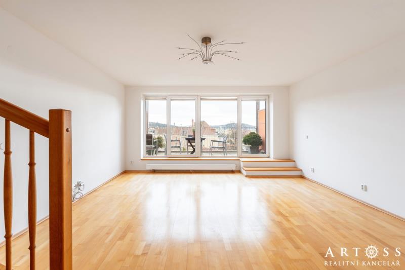 V exkluzivním zastoupení majitele nabízíme k prodeji výjimečný cihlový mezonetový byt 4+1 s terasou a jedinečným výhledem.
