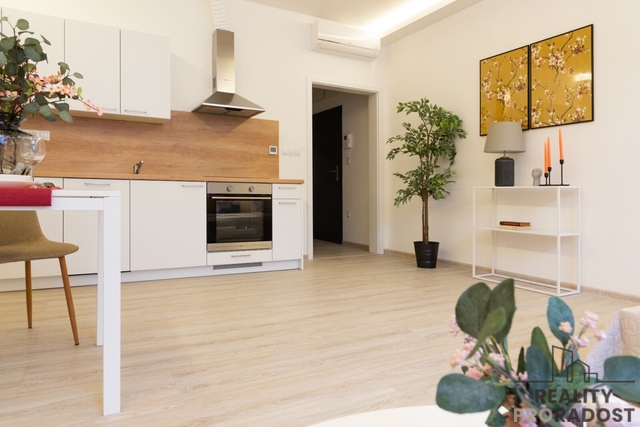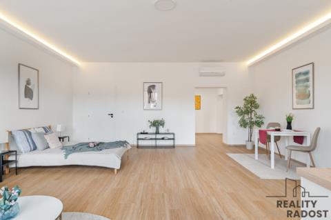Již při vstupu do ateliéru zaujme podlahové vytápění a klimatizace, které zajišťují dokonalý komfort a pohodlí. Ateliér, dispozice 4+KK o velikosti 135,70 m2. 3 neprůchozí pokoje, kuchyně s obávacím pokojem o velikosti 36 m2. Koupelna s vanou a sprchovým koutem, samostatné WC, druhá koupelna. Jediný byt na patře, samostatný vstup. Výhled na Hrádek.