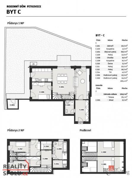 - Užitná plocha: 155,4 m²