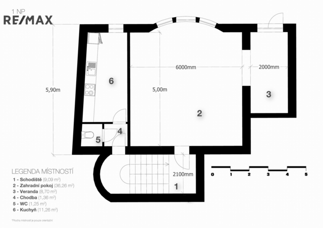 • Podlahy: na chodbách a v kuchyni linoleum, v koupelně a na toaletě dlažba