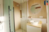 Z obývacího pokoje je vstup do lodžie, která je opatřena bezpečnostní sítí a je ideální relaxační zónou, není oddělen od kuchyně dveřmi, což dotváří dojem vzdušného prostoru a možnost být s rodinou i během vaření nebo stravování.