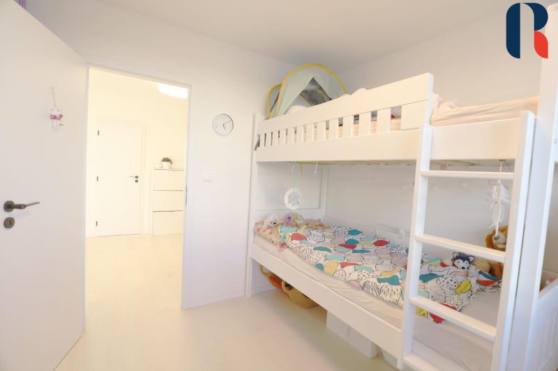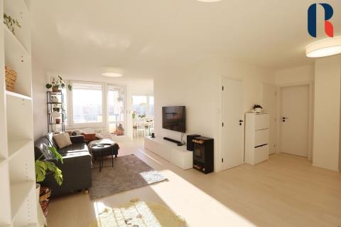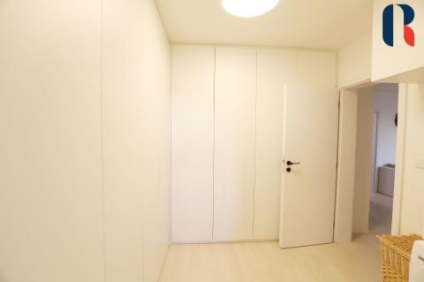 Byt je moderní, funkční, nábytek na míru a vestavěné skříně zajišťují dostatek úložného prostoru a tím maximální využití celého prostoru. Ve všech pokojích jsou předokenní žaluzie a elektro termoizolační rolety, které pomáhají snižovat přehřívání místností v létě, omezovat tepelné ztráty v zimě a digitální termostat k regulaci vytápění místností umožňující i vzdálené ovládání. Je nainstalováno centrální zhasínání světel, možnost změny barev a teploty stropního světla. Na podlaze je kvalitní bezpečná vinylová podlaha ( bio bez ftalátů), v koupelnách a wc dlažba, bezpečnostní protipožární dveře, vnitřní videotelefon s barevným displejem pro ovládání zámku vchodových dveří do domu vč. výtahu.