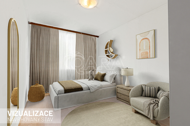 Na klidném místě v oblíbené části Prahy – Chodově nabízíme k prodeji prostorný a světlý byt 4+1 s lodžií (8m²), o podlahové ploše 81,76m². Byt se nachází ve zvýšeném přízemí panelového domu se zateplením, v ulici Hněvkovského. Dispozice bytu je velmi praktická – všechny místnosti jsou přístupné z centrální chodby, což zajišťuje dostatek soukromí i pohodlí. Obývací pokoj s orientací do zeleně má vstup na zasklenou lodžii, která nabízí příjemné posezení s výhledem do klidného vnitrobloku (západní strana). Kuchyň je funkční a připravená na modernizaci podle představ nového majitele (jižní strana). Tři další pokoje mohou sloužit jako ložnice, dětské pokoje nebo pracovna (2x východní, 1x západní orientace). Koupelna a toaleta jsou oddělené, což ocení zejména rodiny s dětmi. Úprava koupelny z roku 2011, použity koupelnové panely ABITIBI na původní jádro. K bytu náleží dva sklepy (celkem 3m²). V domě je k dispozici také kočárkárna a kolárna. Dům samotný prošel zateplením i obnovou společných prostor a působí velmi udržovaně. Lokalita patří mezi nejzelenější a zároveň nejlépe vybavené pražské čtvrti. V bezprostřední blízkosti se nachází zastávka autobusu s přímým spojením na metro Háje, park Hostivař, školy, školky, dětská hřiště i nákupní centrum. Parkování je možné přímo před domem. Byt je ideální pro rodinu, vícegenerační bydlení nebo jako investiční příležitost – díky dispozičnímu řešení lze jednotlivé pokoje snadno pronajímat samostatně. Domovní zálohy: 7.078,-Kč (4 osoby) Elektřina: cca 1.700,-Kč Plyn: cca 600,-Kč