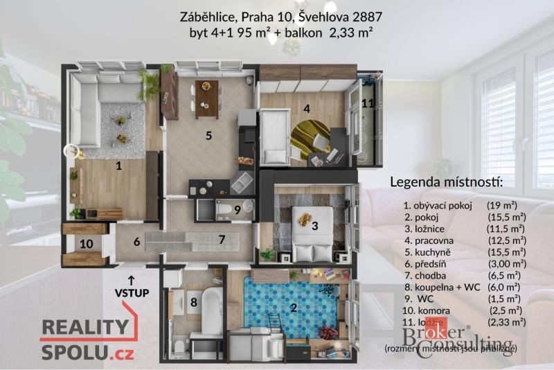 Hledáte velký, světlý a prakticky řešený byt pro rodinu? Nabízíme k prodeji spojený byt ze dvou jednotek o celkové užitné ploše 95 m² v žádané lokalitě Praha 10 – Záběhlice, v ulici Švehlova. Byt se nachází ve 12. patře udržovaného panelového domu s výtahem a nabízí příjemné bydlení s výhledy do širokého okolí. Dispozice 4+1: prostorný obývací pokoj samostatná kuchyně s jídelním koutem tři samostatné ložnice/pokoje vstupní hala s dostatkem úložného prostoru koupelna a samostatné WC (možnost úprav dle potřeb) komora/šatna Hlavní výhody: celková užitná plocha 95 m2 spojení dvou bytů – promyšlené a variabilní řešení podlaží – nadstandardní světlo a pěkné výhledy venkovní žaluzie na oknech – skvělé stínění, úspora energie a maximální komfort dobrá dispozice s oddělenou kuchyní 4+1 dostatek úložných prostor, komora/šatna Lokalita a občanská vybavenost: skvělá dopravní dostupnost: zastávky tram/bus v docházkové vzdálenosti, dále vlakové stanice (za 3 stanice jste na Hlavním nádraží cca 15 min jízdy), rychlé spojení na metro A/C kompletní občanská vybavenost v okolí: školy, školky, obchody, poliklinika, OC Vivo! Hostivař blízko zeleně a volnočasových aktivit: Hostivařská přehrada, parky, cyklostezky Technické informace: osobní vlastnictví orientace bytu: kombinace východ- jih vytápění centrální dálkové měsíční náklady: budou upřesněny při prohlídce