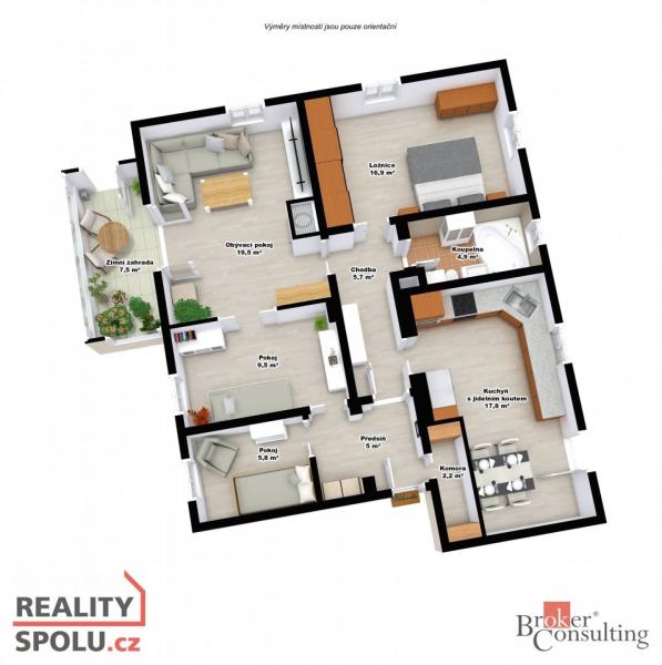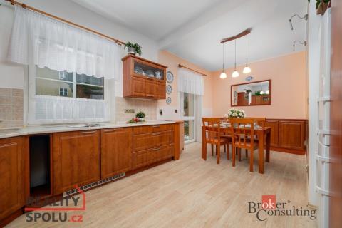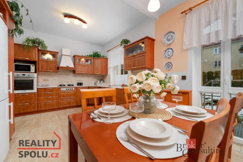 Prostorný byt 4+1 po rekonstrukci, Liberec – Králův háj (ulice Březinova) Nabízíme ke koupi prostorný byt o celkové podlahové ploše 97,28 m², umístěný v 1. nadzemním podlaží zděného bytového domu v žádané liberecké lokalitě Králův háj. Byt prošel rekonstrukcí v roce 2009 a je dlouhodobě velmi dobře udržovaný. Praktická dispozice nabízí dostatek prostoru i soukromí. Je vhodná jak pro rodinné bydlení, tak pro klienty, kteří hledají velkorysý byt ve zděném domě. Z kuchyně a lodžie je přímý vstup na pečlivě udržovanou zahradu. Na základě písemné smlouvy s městem je možné tuto zahradu zdarma využívat, přičemž každý vlastník má vymezenou svou část. Byt dále disponuje praktickou komorou, kterou lze využít i jako šatnu. Vytápění je řešeno kombinací krbových kamen s napojením do radiátorů a kombinovaným plynovým kotlem, který zároveň zajišťuje ohřev teplé vody. V koupelně je instalováno elektrické podlahové vytápění. Byt je napojen na veškeré inženýrské sítě (voda, kanalizace, plyn, elektřina). K bytu náleží velká zděná půdní místnost a k dispozici je také společný půdní prostor. Další úložné možnosti poskytují dva samostatné zděné sklepy v suterénu domu. Parkování je možné přímo u domu. Lokalita Sídliště Králův háj patří dlouhodobě mezi vyhledávané části Liberce. Okolí nabízí dostatek zeleně, dobrou občanskou vybavenost a výbornou dostupnost MHD i autem. Centrum Liberce je vzdáleno cca 2 km. Byt je orientován převážně východ–západ, což zajišťuje dostatek denního světla po celý den. K bytu je možné dokoupit řadovou garáž v ulici Zvolenská, vzdálenou cca 550 m. Shrnutí hlavních benefitů: dispozice 4+1 téměř 100 m² podlahové plochy rekonstrukce bytu zděný dům klidná a vyhledávaná lokalita Králův háj dobrá dostupnost centra města velké úložné prostory možnost dokoupit garáž Tento byt je vhodný jak pro rodiny s dětmi, tak jako zajímavá příležitost pro budoucí podnikání. S financováním rádi pomůžeme.