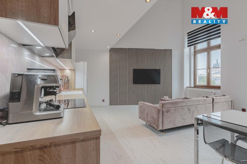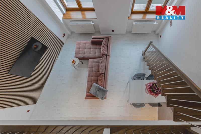 Nabízíme k prodeji originálně řešený, mezonetový byt s celkovou výměrou 77,93 m². Dle prohlášení vlastníka se jedná o bytovou jednotku s dispozicí 2+kk, avšak díky praktickému uspořádání s mezonety je byt aktuálně využíván jako 4+kk, což nabízí dostatek prostoru i pro rodinné bydlení. Bytová jednotka se nachází ve 3. NP cihlového domu s výtahem na Husově náměstí, v blízkosti centra Klatov. Interiér bytu zaujme vzdušností a netradičním rozvržením prostoru. Každá z místností má vlastní mezonet, který lze využít například jako ložnici, pracovnu či útulné místo k odpočinku. V bytě je také praktická půdní komora pro uložení sezónních věcí. K nemovitosti náleží vlastní parkovací stání ve vnitrobloku za domem, což je velkou výhodou při bydlení v centru města. Z oken se otevírají nádherné výhledy na historické centrum. Vytápění i ohřev vody jsou řešeny centrálně plynovým kotlem, což zajišťuje nízké provozní náklady. K dispozici je i prostorná společná kolárna. Vřele doporučujeme prohlídku!