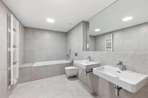 Základní informace o bytu: - Dispozice 4+kk a celková plocha 135.8 m2 - Nachází se ve 8. podlaží. Jednotka je orientována na jihozápad - Balkon s výměrou 19.5 m2 - V dispozici je prostorný obývací pokoj s kuchyňským koutem a samostatné WC - K jednotce náleží sklepní kóje o výměře 1.6 m2 - Jednotka ve standardu Fit out je dokončena do finálních povrchů včetně sanity a obsahuje přípravné body pro kuchyni Informace o projektu: - Posuvná velkoformátová okna, podlahové vytápění, rekuperace, chlazení, alternativní zdroje energie pro snížení nákladů (tepelná čerpadla a fotovoltaika) - Projekt má také střešní terasu přístupnou všem obyvatelům - 5 pater garáží - celkem 220 parkovacích stání pro automobily a 16 pro motorky - Samozřejmostí jsou nabíjecí stanice pro elektromobily Lokalita: - Praha Modřany - Golfové hřiště s výhledy na Vyšehrad - Modřanská cyklostezka - Rozlehlý lesopark Hodkovičky - Divadlo Na Cikorce a nedaleké Divadlo Bravo - A pro milovníky kina je zde Modřanský biograf Restaurace a kavárny - Jen pár kroků od břehu najdete úžasný gastrokoncept Rosmarina zahrnující terasu, okénko, bistro se streetfoodem a restauraci. - Restaurace Cuga je zase součástí golfového hřiště Hodkovičky - V areálu bývalého modřanského cukrovaru je utajený klenot Cukrkandl s barem a kavárnou a také jedinečným zázemím nejen pro rodiny s dětmi - Na Sofijském náměstí v Modřanech probíhají sezónní farmářské trhy