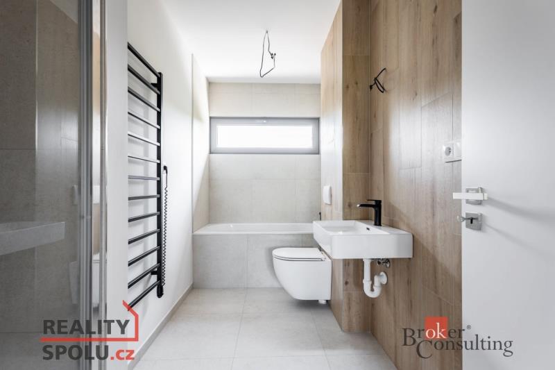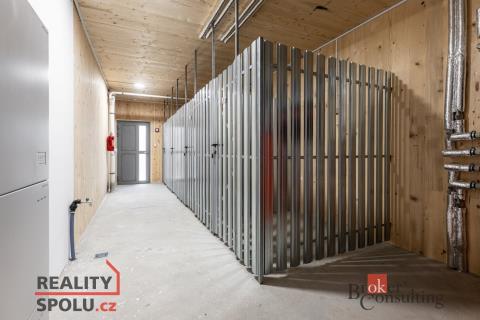 Kvalitu bydlení podtrhují hliníková okna s izolačními trojskly, venkovní žaluzie s možností ovládání jak dálkovým ovladačem, tak mobilním telefonem, a prémiová střešní krytina se zárukou 40 let. Tyto prvky zajišťují dlouhodobou životnost použitých materiálů, vysoký uživatelský komfort a zároveň velmi nízké provozní náklady. Díky tomu byt splňuje energetickou třídu A – mimořádně úsporná, což se dlouhodobě pozitivně odráží v celkových nákladech na bydlení.