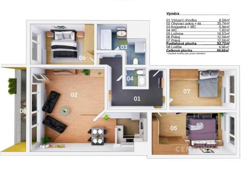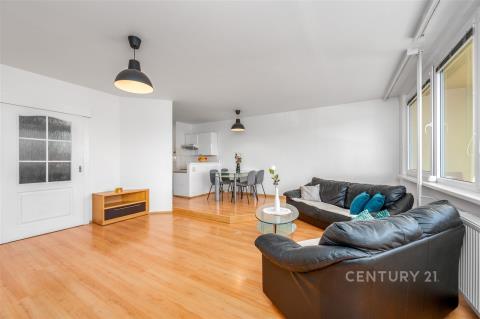 A co samotný byt? Je krásně prosvětlený, s velmi příjemnou a praktickou dispozicí. Hned při vstupu vás okouzlí prostorný obývací pokoj – osobně jsem v něm měl pocit, že jsem v rodinném domě. Na něj navazuje zasklená lodžie, která se brzy rozšíří a posune vaše bydlení na ještě vyšší úroveň. Sklepní prostor je sdílený jen se sousedkou a je bezpečně uzavřený.