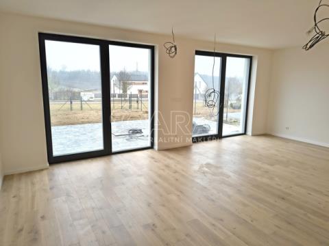 Exkluzivně Vám nabízím nový byt o dispozicí 4+kk s hezkou zahradou v prestižní části obce Vysoký Újezd se skvělou dostupností do Prahy. Byt se nachází v přízemi rodinného domů, kde jsou 3 samostatné bytové jednotky. Kolaudace domů proběhla na konci roku 2025. Celková podlahová plocha bytu je 106 m2 + zahrada 321 m2. Dům je technologicky vyspělou a mimořádně energeticky úspornou stavbou, tepelné čerpadlo, podlahové vytápění a kvalitní dřevena okna s trojskly, příprava na venkovní žaluzie, rozvody bezpečnostního elektronického systému a internetu, což zajišťuje vysoký komfort a minimální provozní náklady. Použito obvodové zdivo s dodatečným zateplením pro skvělou tepelnou izolaci. Dešťová voda je shromažďována v podzemní nádrži a lze ji využít na zavlažování zahrady. Dům je napojen na obecní vodovodní řad, kanalizaci a elektřinu. K bytu patři 2 vyhrazených parkovacích stání na pozemku vedle domu. Vysoký Újezd je exkluzivní rezidenční oblast s kompletní občanskou vybaveností: obchod, restaurace, fitness, golfové hřiště, školy, školky, tenisové kurty a cyklostezky. Díky rychlému spojení do Prahy si můžete užívat komfortní bydlení v klidném prostředí v blízkostí velkoměsta. Oblast je obklopena krásnou přírodou a poskytuje ideální podmínky pro relaxaci i aktivní život, včetně turistických a cyklistických tras. Více informací v RK.