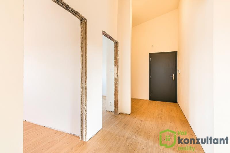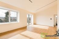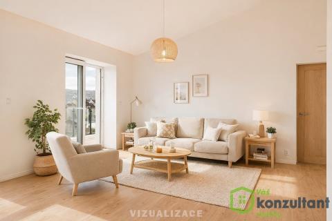 Dominantou bytu je prostorný obývací pokoj s přípravou na kuchyňský kout, který nabízí přímý vstup na terasu. Dále jsou zde tři samostatné pokoje, které lze využít jako ložnici, dětské pokoje nebo pracovnu.