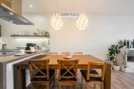 indukční varná deska, trouba, digestoř, myčka). Jídelní stůl elegantně propojuje kuchyň s obývací