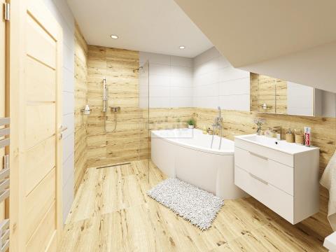 Nabízíme k prodeji nový, mezonetový byt v klidné části obce Rynholec, v rodinném domě se dvěma byty. Jedná se o byt o velikosti 4+kk, kdy čistě obytná plocha bytu činí 89,8 m2 + 13 m2 terasa a v ceně také parkovací stání pro dva automobily na vlastním pozemku u domu. V přízemí bytu se nachází vstupní chodba, koupelna se sprchovým koutem, rohovou vanou a WC, dále pak Obývací pokoj s kuchyňským koutem. V patře se potom nachází tři pokoje a druhá toaleta. Vytápění v celém bytě podlahové teplovodní z vlastního plynového kotle přes který je řešen i ohřev vody. V aktuální fázi možný výběr standardů které jsou v ceně - obklady, dlažby, podlahy, obložkové dveře. K prodeji je v domě e také druhý nový byt 4+kk/T, stání, o výměře 83,8 + 22,5 m2 terasa, za cenu 6.990.000,- Kč. Byty k nastěhování od 1.9.2026. Financování možné hypotékou. Rádi vyřídíme. Bydlení ve velmi klidné lokalitě u rybníka s dobrou dostupností na Prahu.