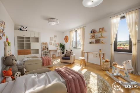 Prodej bytu 4kk se zahradou v Bořeticích, kolaudace 10/2025 Nabízíme k prodeji moderní nízkoenergetický byt s dispozicí 4+kk v atraktivní vinařské obci Bořetice, která je obklopena krásnou přírodou a známá svou dlouholetou vinařskou tradicí. Dispozice a řešení V přízemí se nachází prostorný obývací pokoj s kuchyňským koutem a přímým vstupem na krytou terasu a zahradu, která je ideální pro relaxaci i rodinná setkání. Dále zde najdete praktickou šatnu a koupelnu. V patře jsou dvě světlé ložnice, druhá koupelna a další šatna, což zajišťuje dostatek úložného prostoru pro celou rodinu. Kvalitní standardy vybavení -hliníková okna s izolačními trojskly pro maximální úsporu energií -podlahové vytápění zajišťující komfortní teplo v každé místnosti + dřevěné podlahy v obytných místnostech -nerezový komín a krbová kamna -bezfalcové interiérové dveře v moderním designu -velkoformátové obklady pro elegantní vzhled koupelen -zastíněná terasa s prosklenou střechou -klimatizace a venkovní žaluzie - rekuperační jednotky - interiérová světla Výhody nemovitosti Stavba je navržena jako nízkoenergetická, energetická třída A, což znamená nízké provozní náklady a dlouhodobou úsporu a také levnější případný hypoteční úvěr. Moderní dispozice s dostatkem světla a přímým propojením interiéru se zahradou nabízí pohodlné a nadčasové bydlení. Dvě parkovací místa před domem. Lokalita Bořetice Bořetice jsou malebná jihomoravská obec v srdci vinařského regionu. Nabízí klidné prostředí, krásnou krajinu, cyklostezky a díky dobré dopravní dostupnosti je obec ideálním místem pro trvalé bydlení.