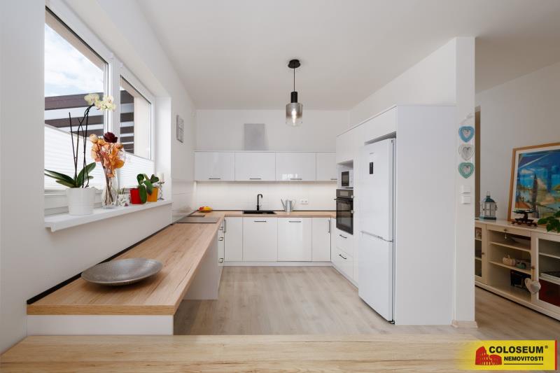 Exkluzivně Vám nabízíme k prodeji krásný a světlý byt o dispozici 4+kk a celkové přibližné výměře 114m2 v novostavbě rodinného domu kolaudovaného v roce 2021. Nemovitost se nachází v klidné, nové části obce Šanov v moderní zástavbě a poskytuje vše pro pohodlný rodinný život. Byt disponuje třemi neprůchozími pokoji, prostornou koupelnou s vanou v teplých přírodních tónech (společnou s toaletou) a velkorysým obývacím pokojem s kuchyní, ze kterého je přímý vstup na terasu krytou pergolou a dále na zatravněnou zahrádku s okrasnou výsadbou. Vlastní pozemek má výměru 257m2. Technické zázemí řeší samostatná technická místnost s elektrickým kotlem, zásobníkem na teplou vodu a druhou toaletou. Díky kvalitnímu zateplení a moderním technologiím jsou provozní náklady velmi nízké. Praktickým benefitem je také půda přístupná vyklápěcími schůdky, sloužící jako úložný prostor. K bytu náleží tři parkovací místa, z nichž jedno je kryté pergolou, a vydlážděné plochy doplňují okrasné záhony. Lokalita: Obec Šanov nabízí základní občanskou vybavenost např. základní školu, mateřskou školu, obchody a vlakovou zastávku. Další služby a školy jsou k dispozici v nedalekých Hraběticích či Hrušovanech nad Jevišovkou. Výborná je i dopravní dostupnost: Znojmo cca 30 km, Brno cca 60 km, Vídeň cca 80 km. Obec je známá svými vinnými sklepy a vinařskou tradicí, okolí je ideální pro cykloturistiku i rodinné výlety. Tento byt je ideální volbou pro rodiny, které hledají moderní, pohodlné a úsporné bydlení s příjemným zázemím a skvělou dostupností do větších měst. Výměra bytu uvedena na základě prohlášení vlastníka. PENB nebyl prozatím dodán proto uvádíme třídu G. Nemovitost lze financovat hypotečním úvěrem, s jehož vyřízením Vám rádi pomůžeme. Neváhejte a domluvte si prohlídku této jedinečné nemovitosti ještě dnes! Pro více informací či domluvení prohlídky kontaktujte realitní makléřku.