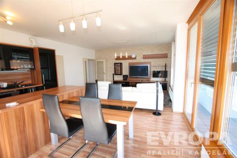 Vybavení bytu tvoří kuchyňská linka s ostrůvkem včetně všech spotřebičů, podlahy jsou laminátové a přírodními tóny, které ladí k rámům moderních eurooken. Vkusně provedené koupelny včetně koupelnového nábytku. Velké skříně v chodbě a v ložnici, police v komorách. Na oknech jsou žaluzie také předokenní automatické rolety. Vytápění a ohřev vody je centrální.
