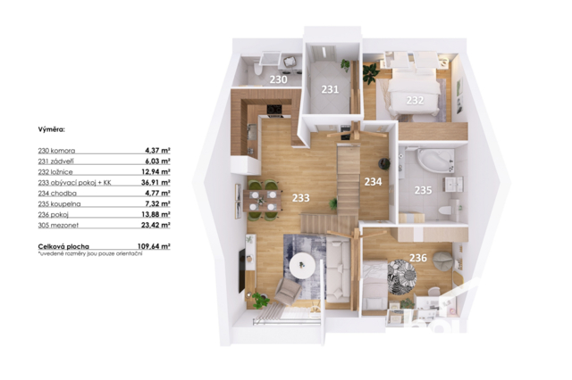 AKCE: první dva kupující získají 150.000 Kč na kuchyňskou linku od Kuchyně Karásek! Toužíte po výjimečném bydlení? Seznamte se s byty unikátního projektu Lofty Lipová v Hodonicích u Znojma. Jeden ze sedmi loftových bytů, kde se historie snoubí s moderními industriálními prvky, může být vaším domovem nebo stabilní investicí. Každý z loftů je navržen tak, aby splňoval nejnáročnější požadavky našich klientů. Čekají vás vysoké stropy, velká okna, otevřené dispozice a kvalitní materiály. Čím je tento byt unikátní? - 4+kk s plochou 112,4 m² - Terasa 28 m² - Sklepní kóje 3,5 m² - Vlastní parkovací stání - Vysoký standard vybavení - Prosvětlený loft s přiznanými trámy - Klidná lokalita s výbornou dostupností do Znojma, Brna i Vídně Hlavní obytná část o rozloze 42 m² spojuje otevřený mezonet, obývací pokoj a kuchyňský kout. Výjimečnou atmosféru tohoto prostoru vytváří kombinace minimalistických detailů, industriálního kovového schodiště a hřejivosti přírodních materiálů, jako jsou dřevěné trámy. Pečlivé propojení těchto prvků dodává interiéru nezaměnitelný charakter. Další komfort zajistí dvě samostatné ložnice a dvě koupelny s toaletou. Byty kladou důraz na kvalitu a funkčnost. Každý je vybaven klimatizací, podlahovým topením a stíněním střešních oken. Tepelné čerpadlo se stará o ohřev TUV a vytápění. Lofty Lipová reagují na nejnovější trendy v oblasti bydlení v podobě kvalitních materiálů a technologií. Do bytu můžete promítnout vaši osobnost a styl výběrem z řady kvalitních podlahových krytin, dveří, koupelnového vybavení a obkladů prémiových značek. Z bytu můžete vytvořit také luxusní sídlo volbou příplatkových dřevěných podlah, vysokých dřevěných dveří a zárubní, vzdušného skleněného zábradlí schodiště, prosklené stěny v otevřeném patře nebo chytrou domácností Loxone. Ke každému bytu náleží parkovací stání, vlastní terasa a sklepní kóje. Můžete si přikoupit i vlastní uzavřenou garáž nebo další parkovací stání. Lofty Lipová najdete v klidné části obce Hodonice s veškerou občanskou vybaveností. Díky dobrému dopravnímu spojení se snadno dostanete do Znojma, Brna nebo Vídně. Máte-li zájem o více informací nebo prohlídku tohoto jedinečného projektu, neváhejte nás kontaktovat. Rádi vám poskytneme veškeré podrobnosti. Zajistíme také financování nemovitosti. Zaručujeme profesionální přístup a ochotu vyjít vstříc vašim požadavkům.