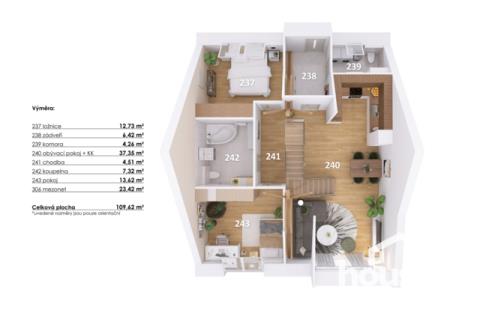 AKCE: první dva kupující získají 150.000 Kč na kuchyňskou linku od Kuchyně Karásek! Toužíte po výjimečném bydlení? Seznamte se s byty unikátního projektu Lofty Lipová v Hodonicích u Znojma. Jeden ze sedmi loftových bytů, kde se historie snoubí s moderními industriálními prvky, může být vaším domovem nebo stabilní investicí. Každý z loftů je navržen tak, aby splňoval nejnáročnější požadavky našich klientů. Čekají vás vysoké stropy, velká okna, otevřené dispozice a kvalitní materiály. Čím je tento byt unikátní? - 4+kk s plochou 112,4 m² - Terasa 28 m² - Sklepní kóje 3,5 m² - Vlastní parkovací stání - Vysoký standard vybavení - Prosvětlený loft s přiznanými trámy - Klidná lokalita s výbornou dostupností do Znojma, Brna i Vídně Hlavní obytná část o rozloze 42 m² spojuje otevřený mezonet, obývací pokoj a kuchyňský kout. Výjimečnou atmosféru tohoto prostoru vytváří kombinace minimalistických detailů, industriálního kovového schodiště a hřejivosti přírodních materiálů, jako jsou dřevěné trámy. Pečlivé propojení těchto prvků dodává interiéru nezaměnitelný charakter. Další komfort zajistí dvě samostatné ložnice a dvě koupelny s toaletou. Byty kladou důraz na kvalitu a funkčnost. Každý je vybaven klimatizací, podlahovým topením a stíněním střešních oken. Tepelné čerpadlo se stará o ohřev TUV a vytápění. Lofty Lipová reagují na nejnovější trendy v oblasti bydlení v podobě kvalitních materiálů a technologií. Do bytu můžete promítnout vaši osobnost a styl výběrem z řady kvalitních podlahových krytin, dveří, koupelnového vybavení a obkladů prémiových značek. Z bytu můžete vytvořit také luxusní sídlo volbou příplatkových dřevěných podlah, vysokých dřevěných dveří a zárubní, vzdušného skleněného zábradlí schodiště, prosklené stěny v otevřeném patře nebo chytrou domácností Loxone. Ke každému bytu náleží parkovací stání, vlastní terasa a sklepní kóje. Můžete si přikoupit i vlastní uzavřenou garáž nebo další parkovací stání. Lofty Lipová najdete v klidné části obce Hodonice s veškerou občanskou vybaveností. Díky dobrému dopravnímu spojení se snadno dostanete do Znojma, Brna nebo Vídně. Máte-li zájem o více informací nebo prohlídku tohoto jedinečného projektu, neváhejte nás kontaktovat. Rádi vám poskytneme veškeré podrobnosti. Zajistíme také financování nemovitosti. Zaručujeme profesionální přístup a ochotu vyjít vstříc vašim požadavkům.