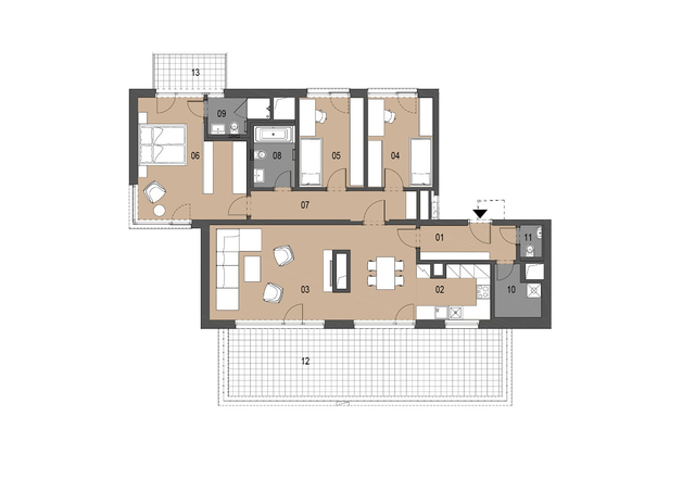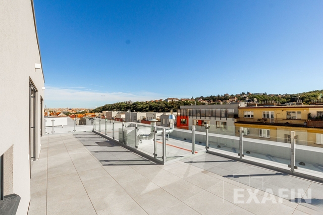 Byt 4+kk s terasou v novostavbě bytového domu - projekt Klamovka Five. Vynikající dostupnost centra města - Anděl 5 minut. Okna ložnic do klidné (neprůjezdné) části ulice Holečkova. Terasa jižním směrem k Plzeňské ulici. Možnost dokoupení dvou garážových stání v domě. Kvalitní provedení stavby a vnitřní vybavení standardem zahrnutým v ceně - např. okna zasklená trojskly, řízené větrání s rekuperačními jednotkami, bezpečností vstupní dveře do bytů, příprava pro klimatizaci, předokenní žaluzie, a mnoho dalšího. Velmi dobré odhlučnění od vnějšího prostředí. Sklepní kóje a komora jsou příslušenstvím, které je k bytu zdarma. V bytě v současné době nejsou instalovány podlahy, interiérové dveře a vybavení koupelen. Dokončení je zahrnuto v ceně. Může být uzpůsobeno požadavkům budoucího majitele, případně odečteno od kupní ceny. Díky umístění v nejvyšším podlaží domu (6.patro) jsou z bytu a ze slunné terasy pěkné výhledy. Doporučujeme prohlídku!