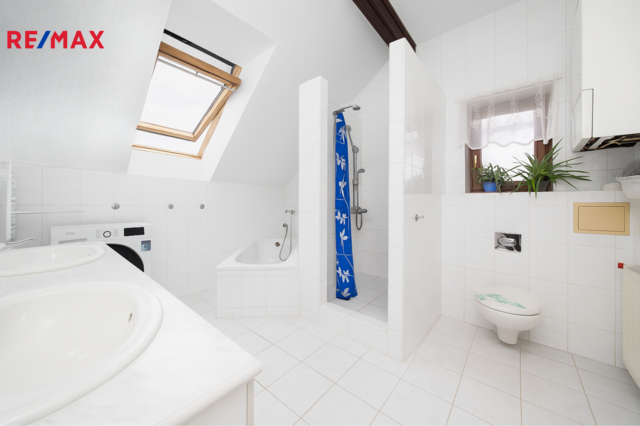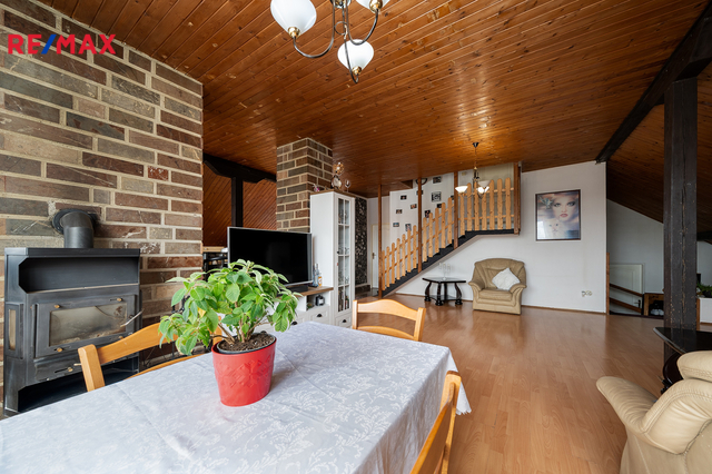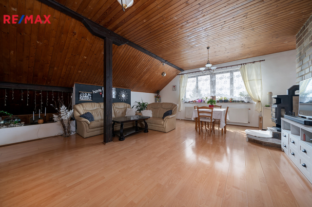 Nabízíme k prodeji část rodinného domu – konkrétně samostatný byt o rozloze 144 m² a k tomu bonusových 36 m² půdy. Tu můžete nechat jako skladiště životních pokladů, nebo ji přeměnit na další obytnou místnost a mít tak bydlení přesně podle svých představ. Byt se nachází v klidné slepé ulici v oblíbené Unhošti – takže klid máte jistý a žádná auta nebudou jezdit kolem jen proto, že někdo zkouší zkratku přes Google Maps. Součástí nabídky je i prostorná garáž o 50 m². Nejen že se do ní pohodlně vejde auto, ale díky úložnému prostoru nad parkovacím stáním klidně i vaše sbírka „věcí, které se jednou určitě budou hodit“. Byt má vlastní vstup po samostatném schodišti, takže soukromí je zajištěno – nikdo vám nebude koukat do talíře. Dispozice zahrnuje velký obývací pokoj s kuchyňským koutem, koupelnu s toaletou, hlavní ložnici, dětský pokoj a ještě jednu menší místnost, ideální třeba na šatnu, pracovnu nebo tajnou komnatu. Přímý vstup na půdu navíc otevírá další možnosti. A teď pozor – k bytu patří i společná zahrada, kde je ve výhradním užívání k bytu krytý bazén, kde si můžete zaplavat i tehdy, když prší. K tomu pergola s venkovní kuchyní (protože grilovat v obýváku se prostě nehodí) a zahradní domek, kam schováte zahradní náčiní, nafukovačky, nebo tchýni… podle vašich priorit. Nemovitost je vhodná k rekonstrukci, což je vlastně výhoda – místo kompromisů si ji doladíte přesně podle sebe. V okolí je veškerá občanská vybavenost a do Prahy to máte autem jen 10 minut. Autobusové spojení samozřejmě také funguje.