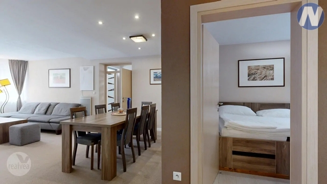 Hledáte místo, kde se výjimečný komfort snoubí s dechberoucí horskou scenérií? Představujeme Vám nadstandardní rodinný čtyřpokojový apartmán s impozantní užitnou plochou 185 m² rozloženou do více podlaží, který nabízí komfort srovnatelný s bydlením v rodinném domě. Čeká vás zde absolutní soukromí, luxusní vybavení a atmosféra prémiového horského resortu – to vše uprostřed nedotčené přírody malebného Horehroní. Apartmán je situován v přízemí areálu a disponuje přímým vstupem na vlastní předzahrádku. V srdci interiéru se nachází rozsáhlý otevřený prostor kuchyně, jídelny a obývacího pokoje s výstupem na terasu poskytující maximální klid a soukromí. Výjimečné prvky, které činí tuto nabídku zcela unikátní: Privátní wellness – stylová sauna přímo v apartmánu a luxusní venkovní jacuzzi na předzahrádce, ideální pro relaxaci pod hvězdami s výhledem do lesů. Elegantní předzahrádka – dokonale propojuje interiér s okolní přírodou a vytváří soukromou relaxační oázu. Prostorná terasa s nádhernými výhledy na panenskou přírodu Horehroní. Komorní minirezort – v domě se nacházejí pouze dva apartmány. Dvě parkovací stání na monitorovaném parkovišti. Lokalita pro náročné Apartmán se nachází v prestižní části Horehroní, považované za nejmalebnější vstupní bránu k jižnímu Chopku. Okolí tvoří rozsáhlé lesní masivy, alpský klid a horský potok Bystrianka, který dotváří jedinečnou atmosféru místa. Lyžařský a turistický ráj Skibus do Jasné – Sever & Jih zastavuje pouhých 100 m od domu. Toto největší a nejmodernější slovenské lyžařské středisko nabízí více než 50 km sjezdových tratí. Menší lyžařský areál s umělým zasněžováním je vzdálen přibližně 2 km. Léto nabízí desítky turistických tras, hřebenovek, cyklostezek i bikeparků. Milovníci golfu ocení blízké špičkové 18jamkové hřiště Gray Bear (cca 4 km). Pouhých 200 m od apartmánu se navíc nachází Bystrianská jeskyně, známá svými léčebnými účinky. Privátní rekreační areál – luxus, který máte po ruce Za symbolický měsíční poplatek mohou majitelé i jejich hosté využívat exkluzivní, pečlivě udržovaný areál připomínající soukromý klub: elegantní vyhřívaný venkovní bazén, profesionální osvětlený tenisový kurt, kvalitní dětské hřiště a lezeckou stěnu, stylové altány s grily přímo u břehu potoka. Výnosná investice Resort se těší dlouhodobě výborné pověsti a stabilní návštěvnosti. Na Booking.com získal mimořádné hodnocení 9,5/10, což potvrzuje jeho oblíbenost mezi hosty. Apartmán je tak nejen symbolem komfortu a luxusu, ale i atraktivní a bezpečnou investiční příležitostí. Cena 375 000 € Pro plátce DPH je možný odpočet – cena bez DPH 310 000 €. (Cena v CZK je pouze orientační pro snadné srovnání.) Hledáte exkluzivní horské útočiště, které kromě odpočinku nabízí i atraktivní výnos z rekreačního pronájmu? Kontaktujte nás ještě dnes pro bližší informace a sjednání soukromé prohlídky.