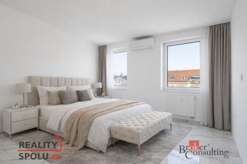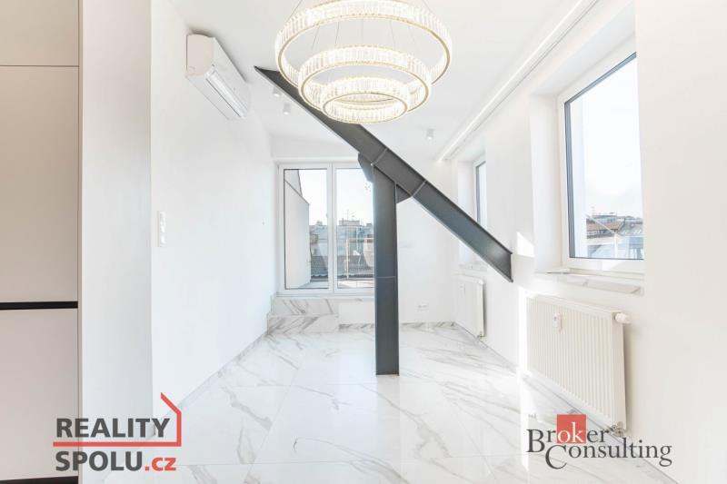 Nabízíme k prodeji exkluzivní, luxusně zrekonstruovaný a kompletně klimatizovaný byt o dispozici 4+kk s celkovou výměrou 200 m², z toho 95,3 m² činí podlahová plocha a 104,7 m² představují prostorné venkovní terasy. Nemovitost se nachází v samotném srdci Brna na ulici Kobližná a nabízí kombinaci moderního designu, nadstandardních materiálů a mimořádně světlého, vzdušného interiéru. V celém bytě je zároveň připravena instalace venkovních žaluzií. Hlavní částí bytu je velká, prosvětlená obývací místnost propojená s moderní kuchyňskou linkou vybavenou kvalitními spotřebiči. Z obývacího prostoru se vstupuje na soukromou terasu situovanou v horním patře, která poskytuje ideální místo pro relaxaci nebo posezení s přáteli a nabízí krásný výhled na centrum města. V bytě se nacházejí dvě designové koupelny – jedna vybavená prostornou vanou a toaletou a druhá se sprchovým koutem a taktéž s toaletou. Elegantní chodba s efektním kulatým zrcadlem dotváří luxusní atmosféru celého interiéru a poskytuje dostatek prostoru a úložných možností. Byt se nachází v jedné z nejžádanějších lokalit v Brně, kde máte doslova vše na dosah ruky – obchody, restaurace, kavárny, kulturní vyžití i perfektní dopravní dostupnost. Jedná se o mimořádnou nabídku, která je ideální pro ty, kdo hledají moderní a nadstandardní bydlení v centru města s výjimečným prostorem a soukromou terasou. Prvních šest fotografií představuje vizualizace možného uspořádání a vybavení místností. Pro více informací nebo sjednání prohlídky nás neváhejte kontaktovat.