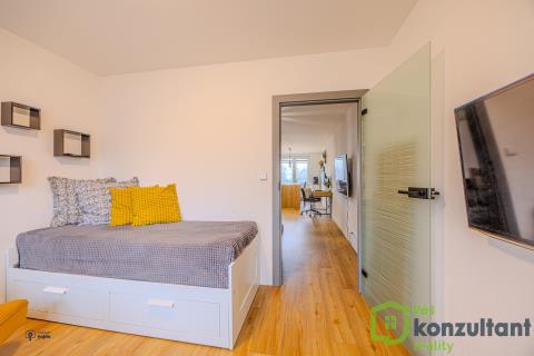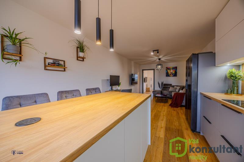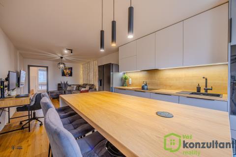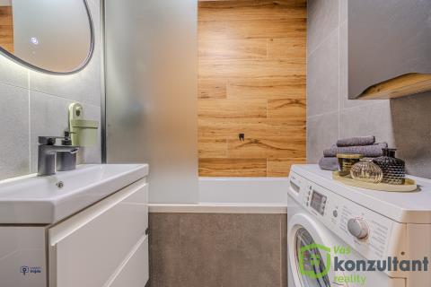 V celém bytě jsou podlahy s pokládkou z lepeného vinylu, v koupelně a na WC velkoformátová dlažba a obklady. Jádro je zděné, rozvody vody a odpadů v plastu, nová elektřina, nivelace podlah, SDK podhledy, nové omítky. Kuchyně na míru s vestavěnými spotřebiči a indukční varnou deskou, vše značky Beko, kuchyňská linka s kováním značky Blum.