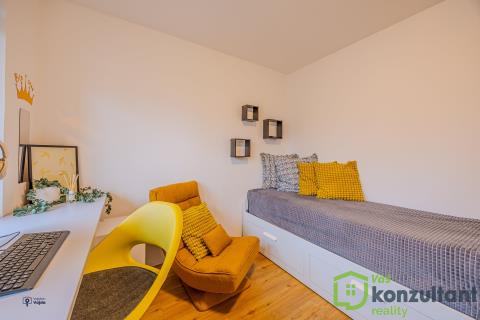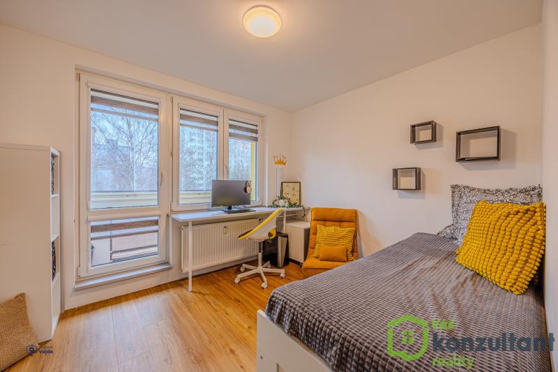 V bytě jsou čtyři pokoje, v tuto chvíli sloužící jako ložnice, obývací pokoj s kuchyní a dva dětské pokoje. Dále byt disponuje prostornou šatnou. Z ložnice je vstup na zasklenou lodžii. V bytě je klasické ústřední topení, studená i teplá voda z vodovodního řádu a protipožární vchodové dveře s bezpečnostním zámkem.