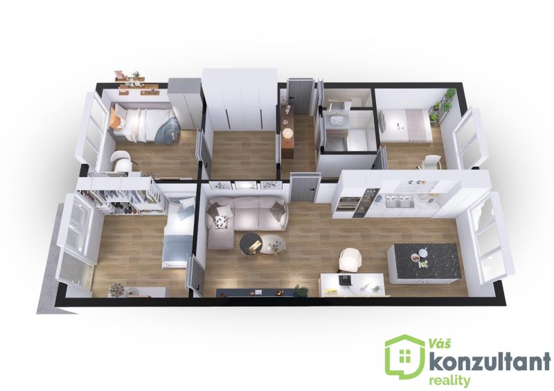Ve výhradním zastoupení majitele Vám nabízíme prostorný byt s dispozicí 4 kk o celkové rozloze 77,5 m2 na ulici Výškovická v Ostravě-Výškovicích. Byt je v osobním vlastnictví, po kompletní a vkusné rekonstrukci z let 2024/2025 dle moderních standardů.