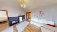 Dispozice: Obývací pokoj 19,27 m²; pokoj 12,02 m²; pokoj 12,02 m²; kuchyně s jídelnou 16,91 m²; koupelna 3,8 m²; WC 1,6 m²; chodba 8,46 m²; předsíň 7,38 m²; lodžie 4,77 m²; sklep 2,52 m².