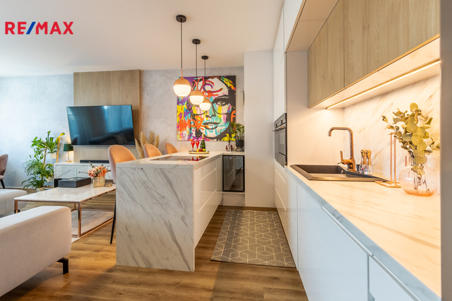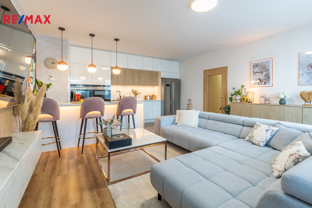 Nadstandardně vybavený byt 4+kk s lodžií a parkovacím stáním Hledáte bydlení, které spojuje styl, komfort a skvělou dopravní dostupnost? Právě pro Vás mám tento moderně a nadstandardně vybavený byt, který nabízí dokonalé zázemí i pro náročné. Exkluzivně nabízím k prodeji byt v osobním vlastnictví o velikosti 4+kk a rozloze 84 m2 + 3 m2 lodžie ve čtvrtém patře novostavby s výtahem v atraktivní lokalitě P10 - Uhříněves v ulici Karla Guta. V bytě byly použity velmi kvalitní materiály. Součástí bytu je klimatizace, předokenní žaluzie, nadstandardní podlahová krytina, osvětlení a koupelnová sanita. Dominantou bytu je prostorný a útulný obývací pokoj s kompletně vybavenou kuchyňskou linkou a se vstupem na lodžii, komora, předsíň s vestavěnou skříni, ložnice s vestavěnou skříni, dětský pokoj s dalším vestavným úložným prostorem, moderní samostatnou šatnu, koupelnu s vanou a samostatné WC. Byt se prodává včetně kompletního zařízení, takže je připraven k okamžitému nastěhování bez nutnosti dalších investic. K bytu patří jedno venkovní parkovací stání. Lokalita s kompletně vybavenou občanskou vybaveností - přímo u domu se nachází supermarket BILLA, restaurace. V pěším dosahu jsou dvě základní školy, školka, pošta. Výborná dopravní dostupnost - zastávka MHD je umístěna téměř u domu - 14 minut BUS na metro C - Háje nebo další spoje na metro A. Vlakové nádraží se nachází 10 minut pěší chůzí od bytu a dostanete se odsud za 19 minut na Hlavní nádraží. Uhříněves je jednou z nejoblíbenějších části Prahy, a to jak pro rodinné bydlení, tak i pro podnikatele. Nabízí nejen příjemné prostředí, ale také perfektní dostupnost do centra Prahy. V okolí najdete parky, cyklostezky i sportovní areály. Koupi bytu lze financovat hypotečním úvěrem, s jehož vyřízením Vám moc rádi pomůžeme. Doporučuji prohlídku.