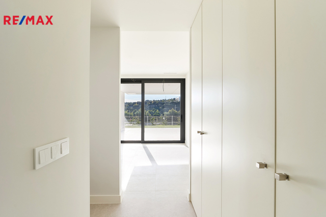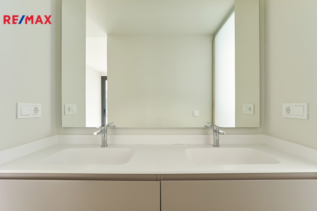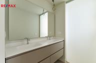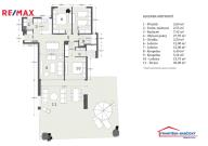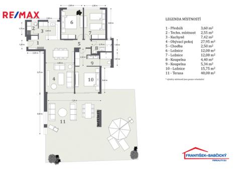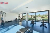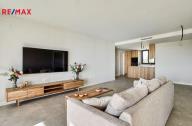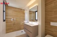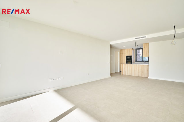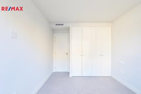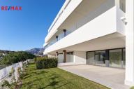 Apartmán je situován v přízemí a nabízí velmi dobře řešenou dispozici s prostorným obývacím pokojem propojeným s moderní kuchyní, třemi samostatnými ložnicemi, dvěma koupelnami, vstupní halou, chodbou a technickou místností. Hlavní obytný prostor plynule navazuje na rozsáhlou krytou terasu o výměře 40 m² a navazující soukromou předzahrádku 75 m2 k výhradnímu užívání, které společně vytvářejí ideální prostor pro venkovní posezení, relaxaci i celoroční užívání středomořského klimatu. Velkoformátové posuvné dveře zajišťují přirozené propojení interiéru s exteriérem a dodávají bytu vzdušný a otevřený charakter. Součástí prodeje je kryté parkovací stání v suterénu domu.