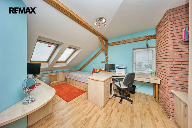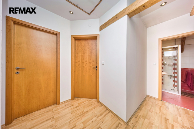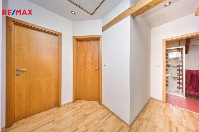 Byt má plastová okna s žaluziemi, rozvody elektřiny v mědi, voda a odpady v plastu. Podlahy ve 2. NP jsou dřevěné prkenné (v koupelně a WC dlažba), v podkroví plovoucí podlahy (v koupelně opět dlažba). Měsíční náklady na byt činí přibližně 7.500,- Kč/měsíc za elektřinu + spotřeba vody. Byt prošel kompletní rekonstrukcí.