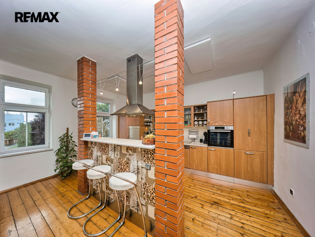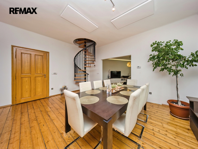 Nabízíme k prodeji mezonetový byt 5+1 s krytým parkovacím stáním, zahradou ve společném užívání, možnou terasou a sklepem v osobním vlastnictví o celkové evidované podlahové ploše 189 m². Byt se nachází ve 2. a 3. nadzemním podlaží (z celkem 3 NP) cihlového domu z roku 1919 bez výtahu.