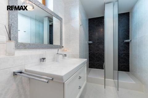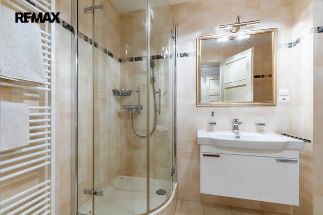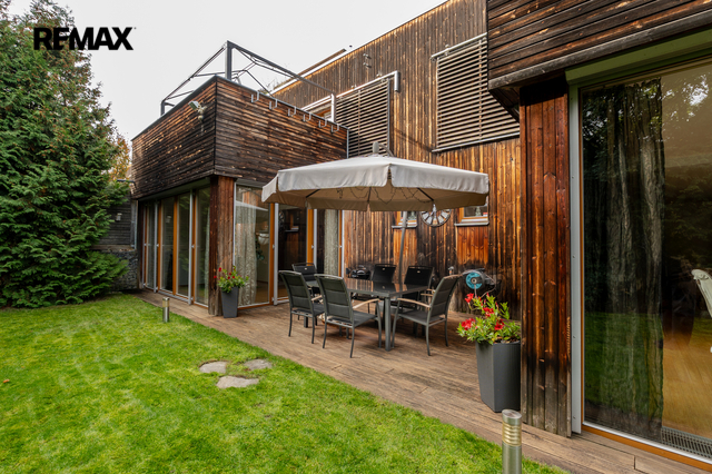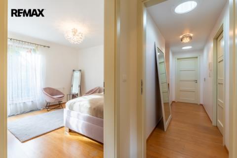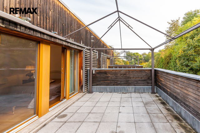 Součástí obytné části je designová kuchyň značky Poggenpohl, vybavená veškerými vestavěnými spotřebiči. Velká francouzská okna zajišťují dostatek denního světla a dodávají interiéru vzdušnost a eleganci.