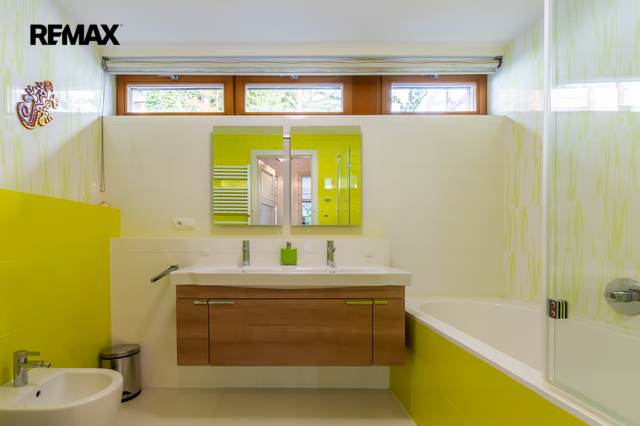 Veškerá sanita značky Villeroy & Boch je zárukou kvality a dlouhé životnosti. V celém domě jsou položeny kvalitní bambusové parkety.