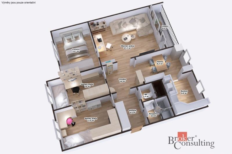 Prodej bytu 5+1, lodžie, po rekonstrukci domu, klidná lokalita Hledáte prostorné bydlení pro rodinu, kde má každý svůj pokoj, ale zároveň nechcete zbytečně velký byt? Právě jste ho našli. Nabízíme k prodeji byt 5+1 v osobním vlastnictví, umístěný v 6. nadzemním podlaží revitalizovaného panelového domu s výtahem. Byt je bez právních vad a připraven k okamžitému převodu. Hlavní výhody bytu: praktická a dobře řešená dispozice 5+1 lodžie u obývacího pokoje dostatek samostatných pokojů pro rodinu i práci z domova rozumná výměra = nižší náklady na provoz dům po kompletní revitalizaci (zateplení, plastová okna, výtah) bezproblémové parkování přímo u domu Dispozice: Po vstupu do bytu vás přivítá předsíň. Napravo se nachází koupelna se sprchovým koutem a samostatná toaleta. Nalevo je pokoj vhodný jako dětský pokoj nebo pracovna. Dále byt pokračuje chodbou, odkud jsou vstupy do dalších místností – dalšího pokoje, prostorné jídelny s navazující kuchyní vybavenou kuchyňskou linkou a elektrickým sporákem. Nechybí velký obývací pokoj s lodžií a samostatná ložnice. Lokalita, která dává smysl: Byt se nachází v klidné části obce s kompletní občanskou vybaveností v dosahu – školy, školky, obchody i služby. Velkým benefitem je také blízkost přírody – okolní lesy, cyklostezky a rekreační oblasti nabízí ideální podmínky pro aktivní odpočinek i relax. Byt je ideální volbou pro rodinu, která hledá dostupné a prostorné bydlení v příjemném prostředí.