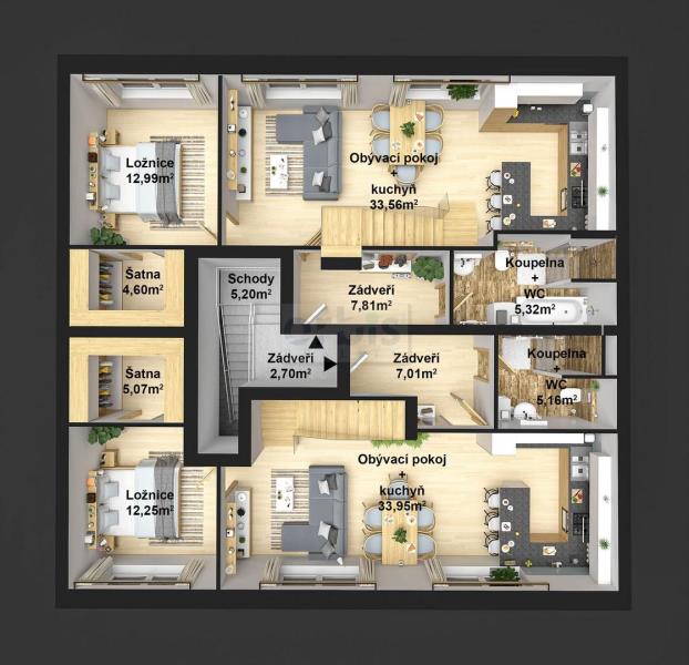 Exklusivně nabízíme k prodeji novostavbu mezonetového byt 5+kk ve zděném domu se třemi byty, v Novém Strašecí. Byt je umístěn v prvním a druhém patře třípodlažní nově budované stavby (k nastěhování konec r. 2026). Možno zvolit ze dvou variant bytů - obytná plocha 127,48 m2 nebo 128,61 m2 (v nabídce také byt 3+kk o výměře 98 m2). V prvním podlaží bytu nalezneme vstupní chodbu, koupelnu, ložnici s šatnou, obývací pokoj s kuchyňským koutem a schodiště. V druhém podlaží potom byt pokračuje prostornou chodbou, třemi pokoji a koupelnou. K bytu náleží v ceně parkovací stání ve dvoře za dvěmi sekčními vraty s elektrickým pohonem. Vytápění bytu a ohřev vody řešeno vlastním plynovým kotlem, v celém bytě teplovodní podlahové vytápění. Byt se nabízí v kvalitních standardních materiálech, možnost výběru obkladů, dlažeb, finálního povrchu podlah a obložkových dveří. V případě zájmu možno řešit také nadstandardní výběr materiálů dle požadavků klienta. Pro bližší informace nás neváhejte kontaktovat. Financování možné úvěrem, rádi vyřídíme.