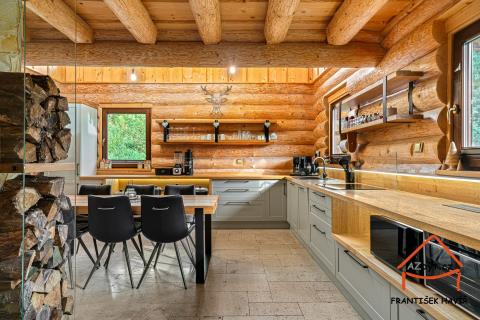 Vstupte do světa, kde se snoubí noblesa přírodních materiálů s moderními technologiemi. Tento unikátní srub (kolaudace 2018) je součástí exkluzivního resortu River Village Orlík, tvořeného pouhými osmi sruby v malebném prostředí jižních Čech.