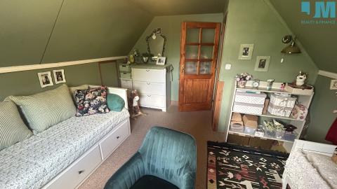 Stylový dům v obci Dobřečov nabízí ideální spojení klidného bydlení v přírodě s komfortem a velmi nízkými provozními náklady. Nemovitost je vhodná jak pro trvalé bydlení, tak i jako rekreační chalupa. Jedná se o dřevostavbu o dispozici 3+1 s podlahovou plochou 101 m² (bez terasy), která je z větší části zrekonstruovaná a nachází se na pozemku o celkové výměře 1 582 m². Parkování je možné až pro tři automobily přímo na vlastním pozemku a dům je prodáván vybavený, s výjimkou osobních věcí, a je tak připraven k okamžitému užívání.