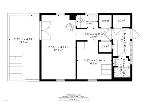 Dispozičně je chata velmi prakticky řešená: spodní část: samostatná toaleta, koupelna se sprchovým koutem, komora, malá kuchyňka, jídelna a obývací pokoj, kde se nachází televize a nová krbová kamna, která pohodlně vytopí celý prostor.