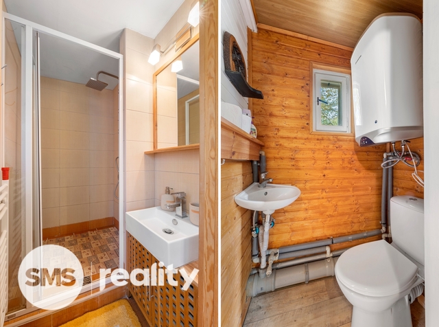 Má nový komín, nová krbová kamna a plastová okna i dveře včetně vstupu na terasu.