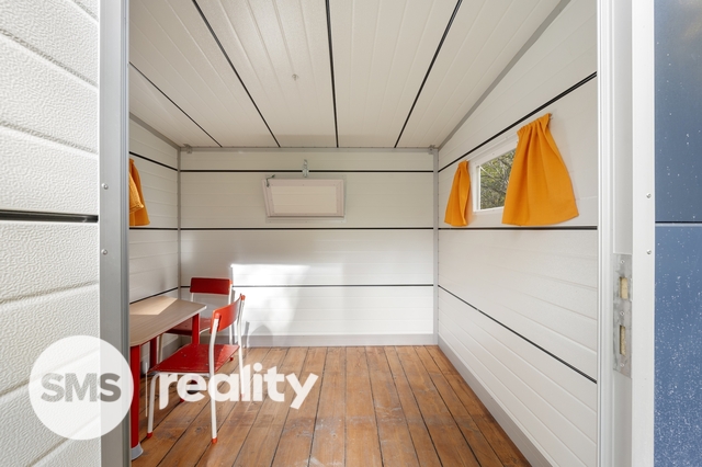 Z obývací části je přímý vstup na terasu, která je oplocená a vybavena výsuvnou markýzou – ideální pro posezení, grilování či letní relaxaci.