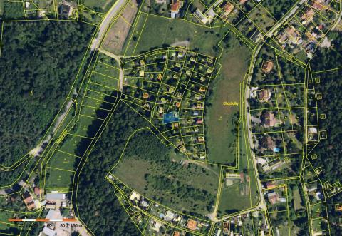 Dále je součástí prodeje id. 1/20 pozemku prac.č. 581 trvalý travní porost (rokle), který zajišťuje přístup k chatě.