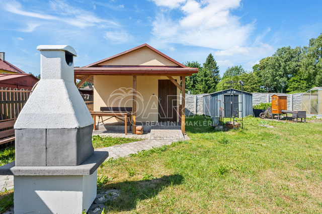 Elektřina přivedena do chaty, na pozemku zavedena voda z vodovodního řadu (voda je k dispozici v sezóně od jara do podzimu), chemická toaleta. Chata je ve velmi dobrém stavu – zateplení, plastová okna, na střeše položena střešní šindel. Topení řešeno elektrickým přímotopem. Na pozemku se nachází krb, udírna, zahradní domek, skleník, bazén. Možnost využití solární sprchy.