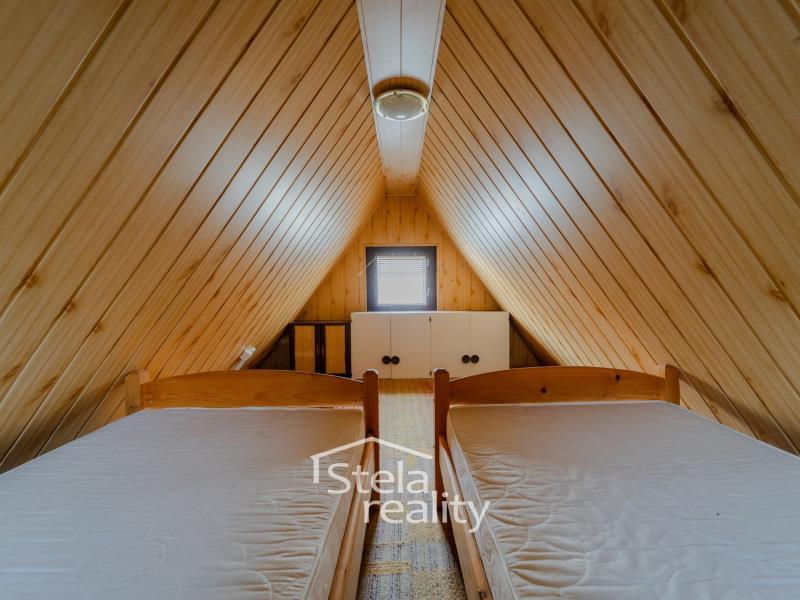 Nabízíme k prodeji chatu bez č. p. i č. ev. o dispozici 2+kk, užitná plocha 32 m², pozemek 568 m² v zahrádkářské kolonii MEXIKO v Mezině. Jedná se o samostatně stojící chatu se sedlovou střechou. V přízemí se nachází schodiště na terasu s hlavním vstupem do obývacího pokoje, schodiště do podkroví, kde je jeden pokoj. Nemovitost je v udržovaném stavu. Vytápění kamny na tuhá paliva. Součástí pozemku jsou ovocné stromy, keře a dřevěná kůlna. Chata se nachází v klidné lokalitě cca 2 km od Bruntálu v blízkosti vodní nádrže Slezská Harta. V případě zájmu zajistíme financování. Makléř doporučuje prohlídku!