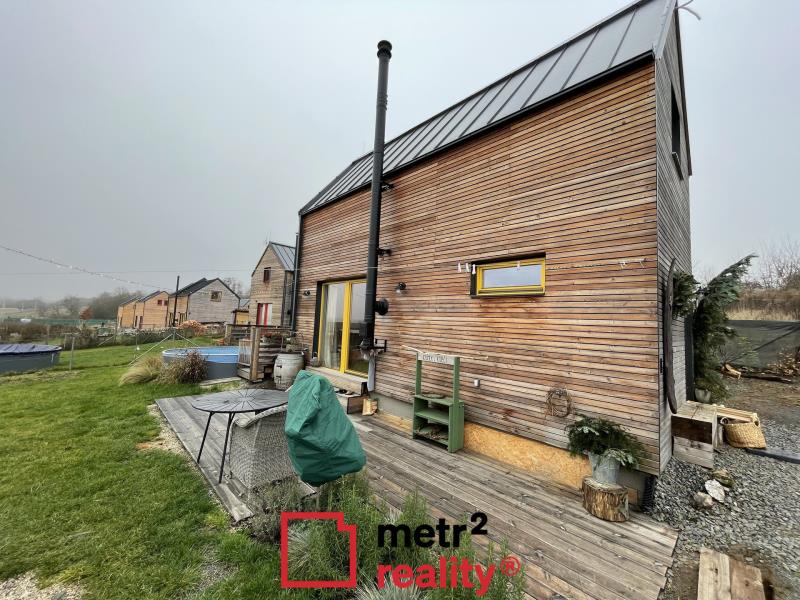Ve výhradním zastoupení majitele Vám nabízíme k prodeji jedinečnou chatu k celoročnímu užívání v ojedinělém projektu v klidné části obce Nemilany, Olomouc. Možná právě zde začíná Váš příběh o harmonickém bydlení, kde se propojuje moderní skromný způsob života a krása přírody. Již při prvním příchodu Vás okouzlí pečlivě udržovaná zahrada o rozloze 471 m² se záhony, která nabízí prostor pro rodinná setkání, dětské hry i chvíle relaxace u venkovního bazénu. Vaše děti si mohou vychutnat dětství naplno v jejich vlastním domečku na zahradě, zatímco vy si dopřejete odpočinek na terase a nebo si něco dobrého ugrilujete. Dům o dispozici 3+1 je promyšleně řešen tak, aby každý člen rodiny našel svůj koutek. Dům je rozšířen přístavbou kontejneru. Moderní kuchyň v černém dekoru působí elegantně a nabízí plné vybavení, kde vaření bude radostí. Dětský pokoj je vybaven vestavěnou dvoupatrovou postelí, která šetří prostor a vnese do každodenního života dotek hravosti. Útulná ložnice přináší klidné zázemí pro chvíle odpočinku. Obývací pokoj s jídelní částí propojuje rodinu v jeden harmonický celek. Chata byla postavena jako patrová dřevostavba s antracitovou plechovou střešní krytinou a obložením z modřínového dřeva, což jí dodává jedinečný vzhled. Koupelna s vanou a příjemně řešeným interiérem poskytuje prostor pro relaxaci po náročném dni. O tepelný komfort se starají jak podlahové vytápění, tak krbová kamna, které oceníte v chladnějších dnech. Voda je zajištěna z hlubokého vrtu (80 m), odpady jsou řešeny společnou jímkou o objemu 40 m³. Samozřejmostí je také možnost parkování pro dvě auta přímo na kraji pozemku. Lokalita nabízí perfektní kombinaci klidu a dostupnosti – v blízkosti MHD i vlakového spojení, takže do centra Olomouce i zpět se dostanete snadno a rychle. Pro rodiny s dětmi i milovníky aktivního života je zde vše, co potřebujete: od aquaparku, přes obchodní centra, restaurace až po školská zařízení a sportovní areály v dosahu několika minut. Pokud hledáte místo, kde si konečně naplno užijete čas s rodinou a kde se budete každý den probouzet v klidu zeleně, neváhejte nás kontaktovat pro více informací nebo si sjednat prohlídku. Váš nový domov možná právě čeká na Vás.