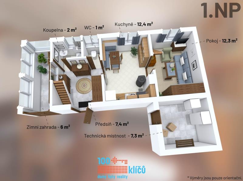 Realitní kancelář 100klíčů Vám nabízí částečně roubenou chalupu 3+1 uprostřed nádherné přírody posázaví s možností celoročního užívání. Nachází se v osadě Důle v Hradových Střímelicích, klidné části obce Stříbrná Skalice, jen 30 km jihovýchodně od Prahy. Celková rozloha pozemku je 1054 m2. Na zahradě se vzrostlými stromy je k dispozici bazén, garáž, kůlna, dětský domek a samostatný sklípek. Pitná voda je odebírána z vlastní studny. Odpadní vody jsou svedeny do jímky. Vytápění zajišťují radiátory s kotlem na tuhá paliva, dále jsou v kuchyni také samostatná kamna. Současná dispozice: 1. Nadzemní podlaží: předsíň, kuchyně, obývací pokoj, koupelna, WC, veranda, technická místnost 2. Nadzemní podlaží: 2 ložnice, balkon Dobrá dostupnost Prahy a celoročně udržovaná přístupová cesta poskytuje možnost celoročního využití nejen k rekreaci ale i k trvalému bydlení. Nemovitost je možné financovat hypotékou, kterou Vám rád pomůžu zajistit. Pro bližší informace mě neváhejte kontaktovat.