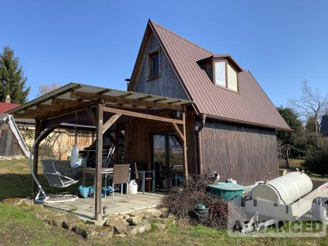Na pozemku se nachází dřevěná chata se zavedenou elektřinou a vodovodem, odpadní vody jsou řešené do jímky. Ve spodní části je pokoj s vybaveným kuchyňským koutem (myčka, dřez), pračkou, sprchovým koutem, kamny a francouzskými okny (plastové) vedoucími na krytou terasu. V horní části, která je přístupná vnějším schodištěm, je ložnice (4 lůžka). Ohřev vody je zajištěn elektrickým bojlerem.