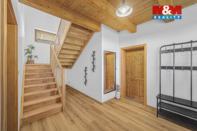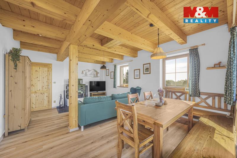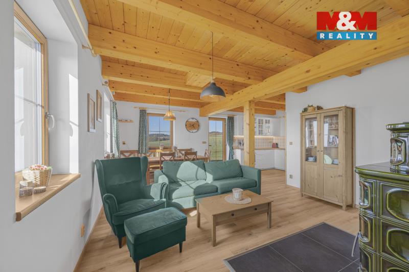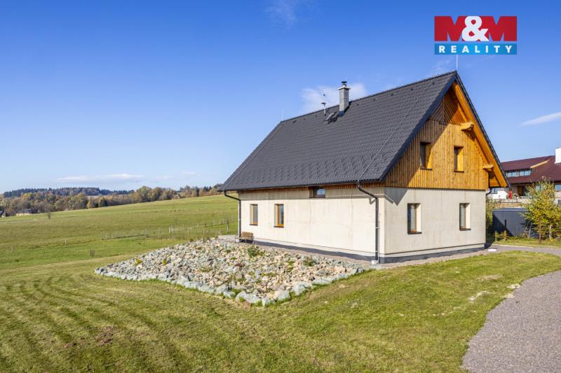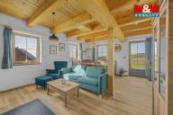 Nabízíme k prodeji stylovou horskou chalupu kolaudovanou jako rodinný dům o dispozici 5+kk, situovanou v klidné části obce Bělá u Liberka. Dům o užitné ploše 142 m² je novostavbou se dvěma nadzemními podlažími. Na pozemku o rozloze 3835 m² naleznete zpevněné parkování a dostatek prostoru pro odpočinek. V domě jsou dvě koupelny, jedna s vanou a druhá se sprchovým koutem. Podlahy jsou vinylové s podlahovým vytápěním, které je zajištěno tepelným čerpadlem a kachlovými kamny s výměníkem. Nemovitost je vybavena moderní kuchyňskou linkou se všemi spotřebiči. Technická místnost je vybavena akumulační nádrží, elektrický bojlerem a úpravnu pitné vody. Voda je zajištěna z vrtné studny, odpadní vody jsou řešeny biologickou čistírnou. Okna plastová s trojskly a sítěmi proti hmyzu. Dům je kompletně zateplený a čeká na finální nátěr fasády podle vkusu nového majitele. Ski areály Říčky a Zdobnice vzdálené 16 minut autem. Více informací u makléře.